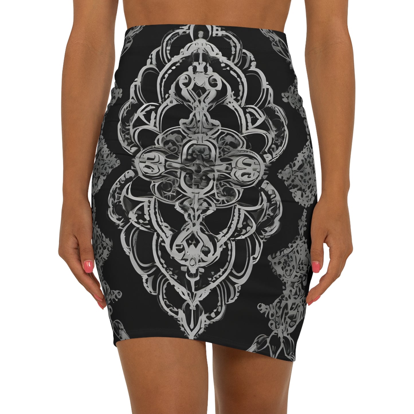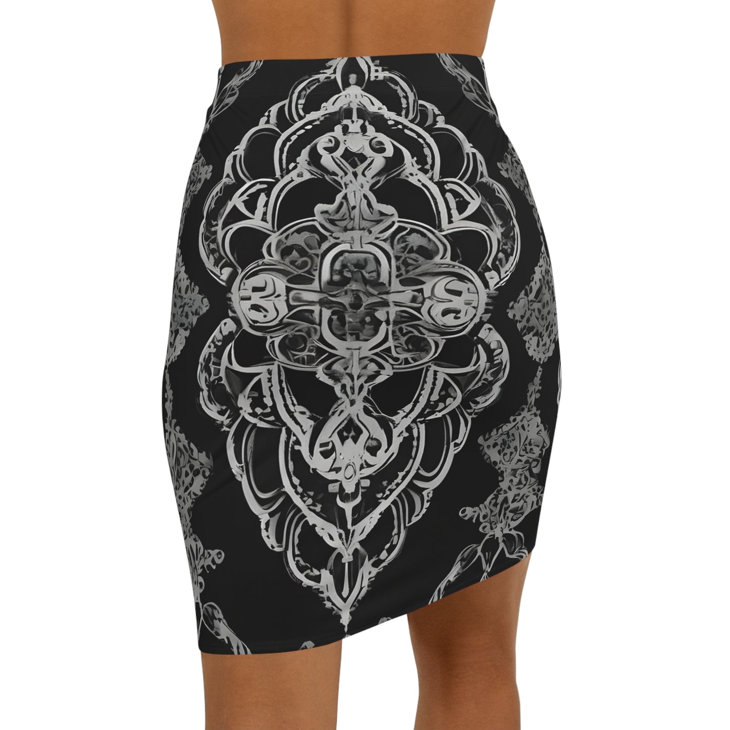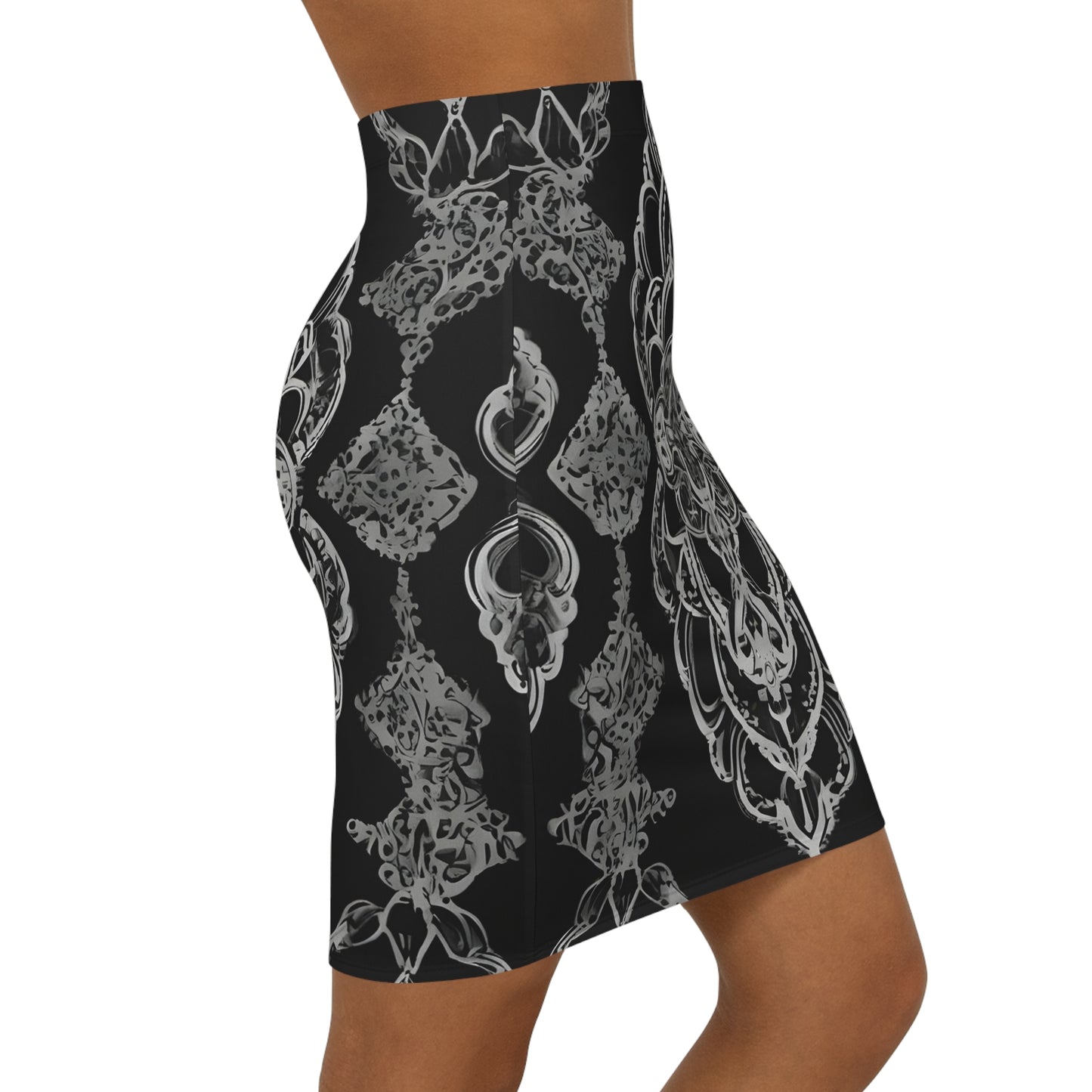 Black and white geo Women's Mid-Waist Pencil Skirt (AOP)